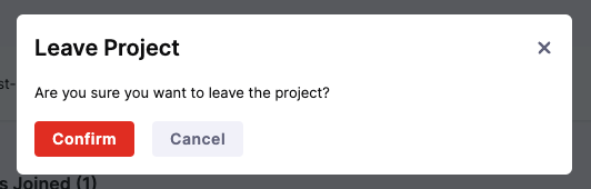 A confirmation dialog will pop up, click on the Confirm button to leave the project.